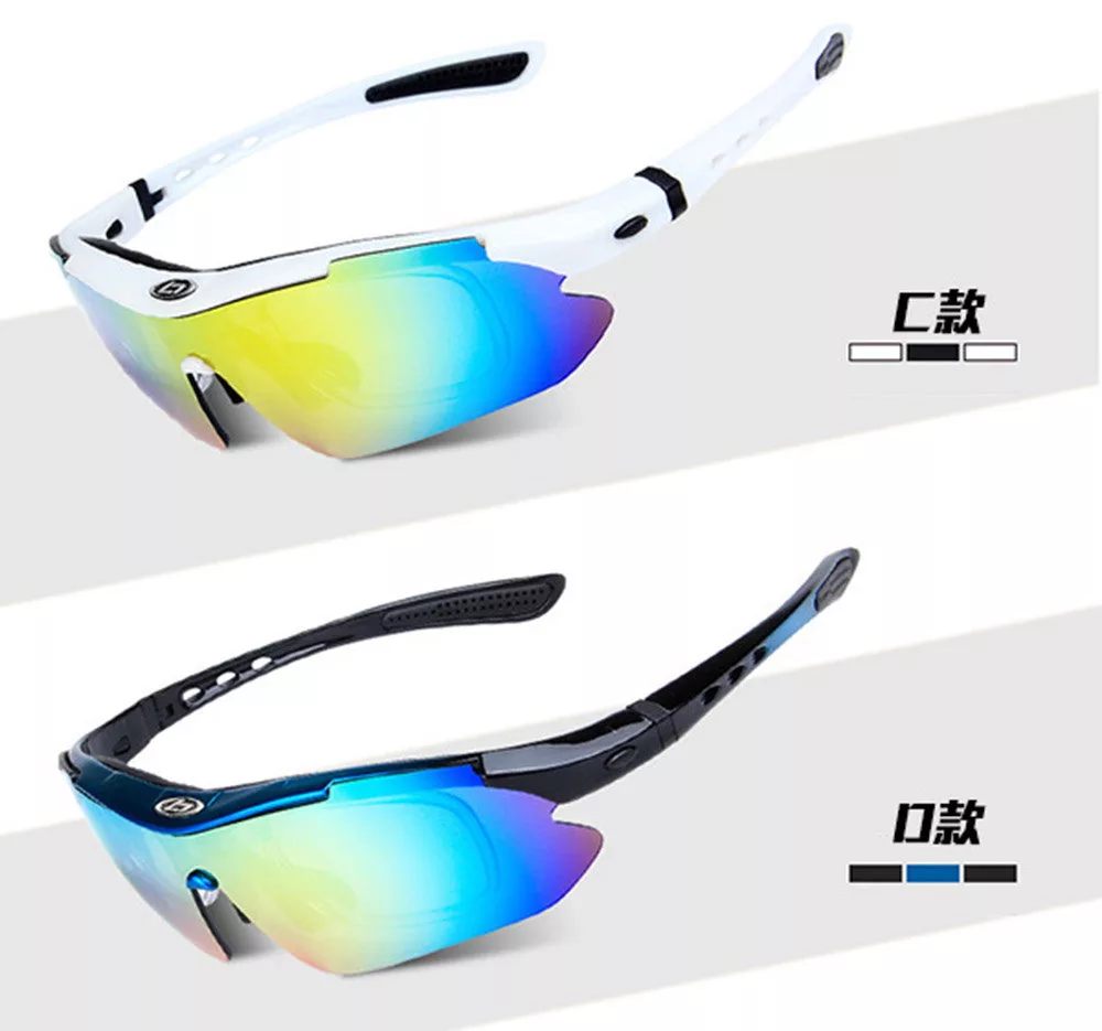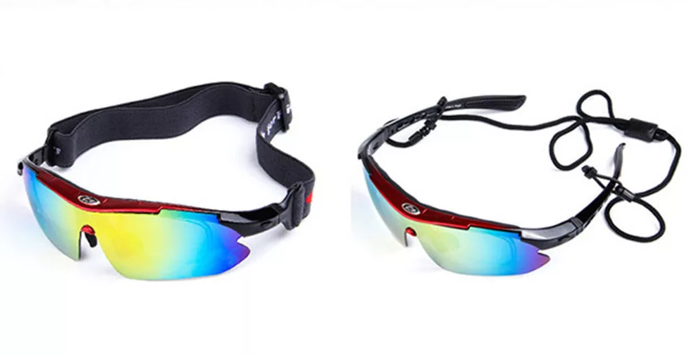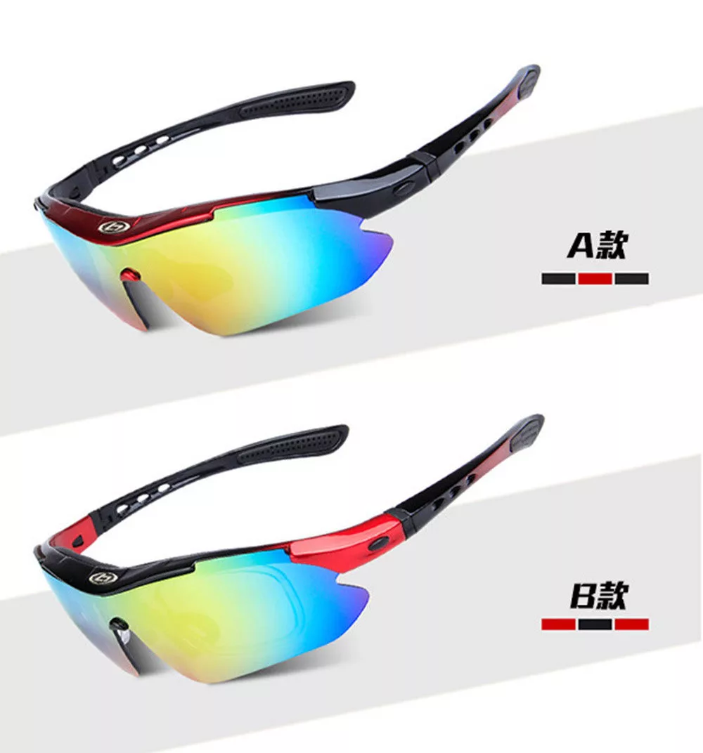 戶外運動眼鏡套裝,一套有 5 款鏡片及頭帶供更換!B款--紅黑色