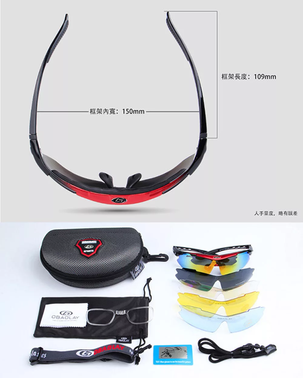 戶外運動眼鏡套裝,一套有 5 款鏡片及頭帶供更換!B款--紅黑色 評價
